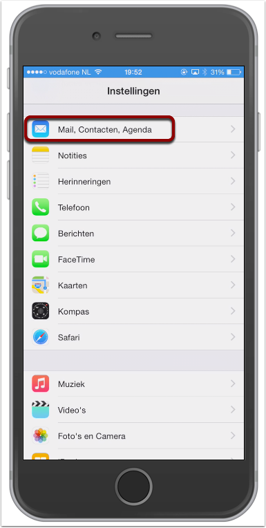Scroll hierna naar beneden tot u Mail, Contacten, Agenda tegen komt en klik hierop.